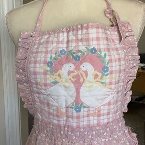 Has a rip on both sides of apron. Can be mended by a Taylor. Please see pictures.