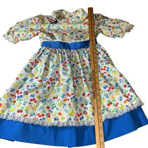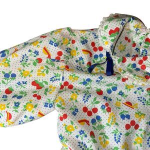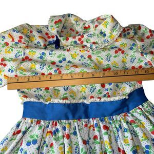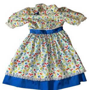Vintage 70s Girls/Kids Yellow Fruit Print Dress Cottagecore Homemade