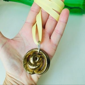 Necklace pendant in a Rose Flower design on yellow ribbon