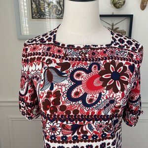 Vintage 70s Goldworm Italy Short Sleeve Mod Boho Print Dress M