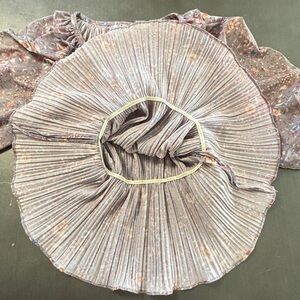 Vintage 70s Gray Floral Keyhole Ruffled Pleated Peplum Chiffon USA Union Made