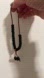 This cool bracelet from Greece features a harmonious blend of black worry beads strung on a light brown leather cord, creating a striking contrast. The uniform round glass beads are crafted to perfection, offering a timeless and versatile accessory. A tassel-like detail adds a touch of elegance, making it a perfect addition to any jewelry collection. Bought in Greece during my 70s backpacking days. Measures 7 inches long.