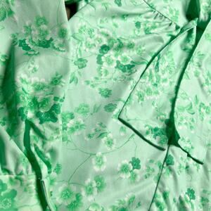 Vintage 70s Green Floral Print Polyester Long Sleeve Blouse Attached Neck Tie