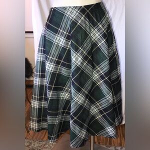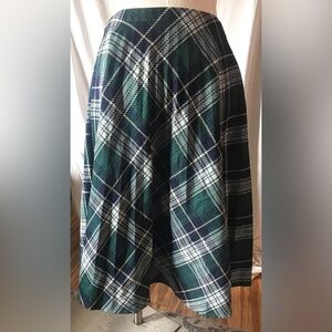 Vintage 70s Green Plaid Midi Pleated Skirt size M