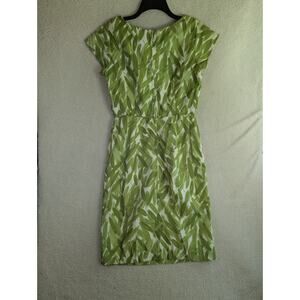 Vintage 70s Green Sheath Dress Womens Sz 8 (No Size Tag) Leaf Print Union Made