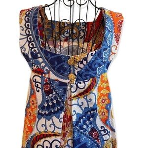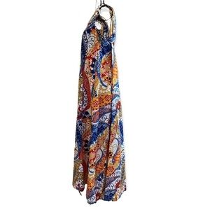 Vintage 70's Groovy Jacquard Paisley Maxi Sleeveless Dress Size Size Small