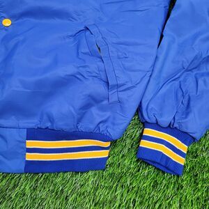 Discover a vintage 70s Gun Club bomber jacket in blue, size medium. Perfect for retro style enthusiasts!