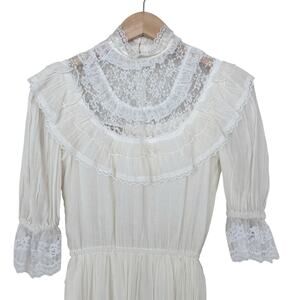 Vintage 70s Gunne Sax White Lace Maxi Cottagecore Dress Prairie Boho Sz 5