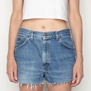 1970s cutoff denim shorts with the perfect vintage patina. fits size L high waisted and size M low and loose.