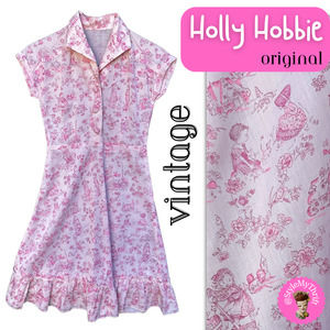 Vintage 70s HOLLY HOBBIE ORIGINAL FABRIC Childs Print Pink Cotton Dress Summer