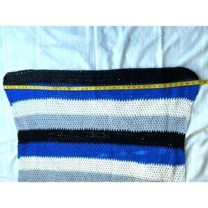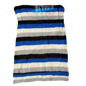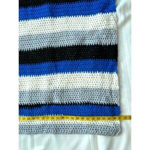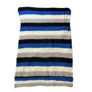 Hand Crocheted Afghan Throw Baby Blanket Striped blue black