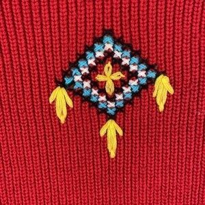Vintage 70’s Hand Made Folk Art Floral Embroidered Knit Sweater Vest Size L