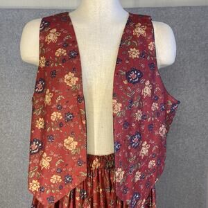 cottagecore outfit, prairie skirt vest, homemade floral set, womens red floral, boho vintage