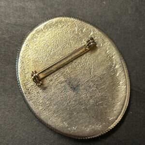 Add a touch of vintage charm to your outfit with this beautiful 70's hand-painted porcelain brooch. The delicate roses in blue and yellow hues create a lovely and eye-catching design.