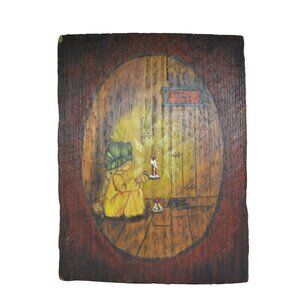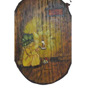 Vintage 70s Hand Painted Wood Wall Art Signed 1976 Little Girl with Candle 15.5" x 11.5"