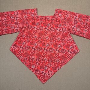 Vintage 70s Handmade Boho Bandana Print Blouse Red Handkerchief Hem Western Top