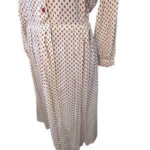 Vintage 70s Handmade Cottagecore Button Down Dress Red Floral L