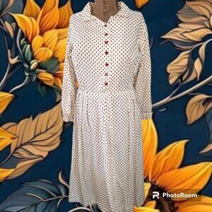 Vintage handmade cottagecore dress with dainty red floral print. Made by my Great Aunt! Size is estimated , please see measurements below.