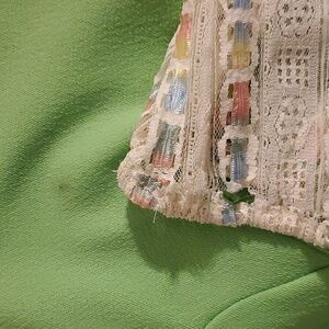 Vintage 70s Handmade Cottagecore Prairie Neon Green Rainbow Maxi dress XS