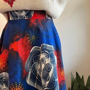 Vintage 70s Handmade Mod Cloud Sunshine Printed A-Lined Flared Mini Skirt - XS