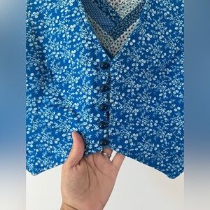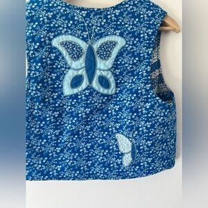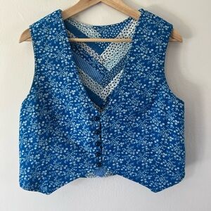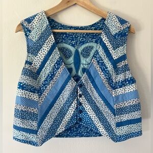Vintage 70s Handmade Patchwork Blue Floral Butterfly Reversible Button Front Vest