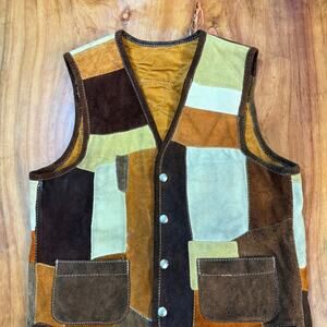 Vintage 70's Handmade Patchwork Vest Suede Leather Snap Western Hippie K23
