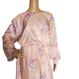 Vintage 70s Handmade Semi Sheer Floral Bluson Mumu Caftan Housedress