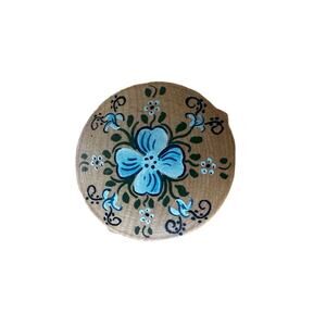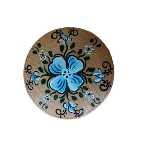 Vintage 70s Handpainted Wooden Blue Flower Brooch