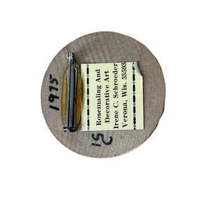 Handpainted wooden brooch from 1975 with blue floral design. Has the original tag on the back that says Rosemaling and Decorative Art - Irene c. Schroeder, Verona, Wis on it and handwritten is the year 1975 and a maker's mark. Very awesome piece that would look killer on a hat, scarf or jacket.