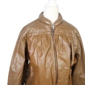 Vintage 70s Harmal New York Brown Leather Zip Front Bomber Jacket 12