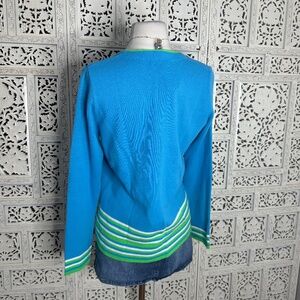 Vintage 70's Haymaker Blue 7 Green Striped Preppy Golf Button Up Cardigan Sz M