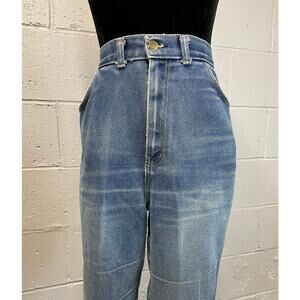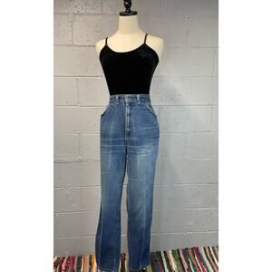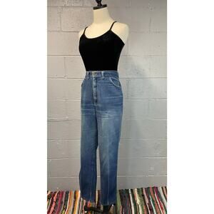 Vintage 1970s high waisted medium wash straight leg Western cowgirl jeans.