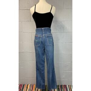 Vintage 70s High Waist Western Jeans Embroidered Pocket Honest Wear Prairie Rose