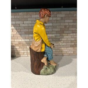 Vintage 70s Holland Mold Ceramic Country Boy Sitting On Stump Feeding Dog 17” no cracks some paint is missing in spots