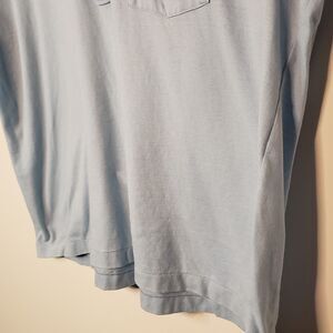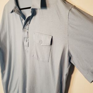 This vintage Inverness polo shirt is a unique find from the 1970s. Made of a comfortable cotton blend terry cloth material in a refreshing blue color, this XL shirt is perfect for any casual occasion. The short sleeves and pocket detail add to its practicality and style. The shirt is an original piece from Korea, Republic of and has a 70s vibe. Perfect for vintage clothing enthusiasts or those looking for a timeless shirt to add to their collection. 24" long 26" pit to pit