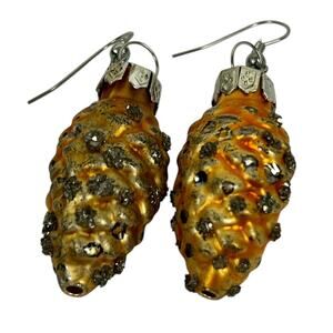 Vintage 70s Italian Glass Pinecone Glitter Ornament Earrings