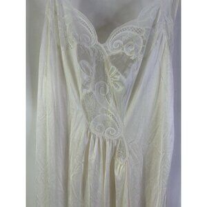 Vintage 70s Ivory Satin Lace Sheer Front Slip Gown Negligee USA
