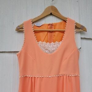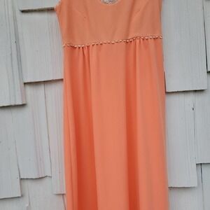Vintage 70s JC Penney Fashions Peach Sleeveless Maxi Dress 12
