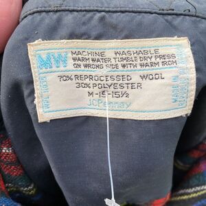 Vintage 70s JC Penney Wool Blend Plaid Flannel Women's Long Sleeve Shirt Size M 15-15.5