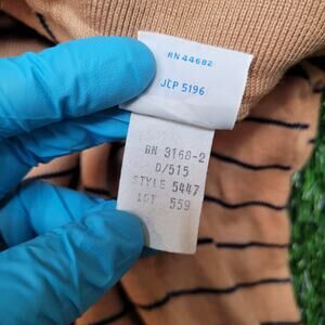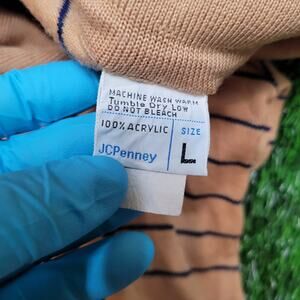Vintage 70s JCPenney striped knit polo womens medium tan camel navy disco mod rockabilly banded hem blouson acrylic shirt shop now