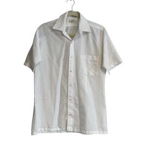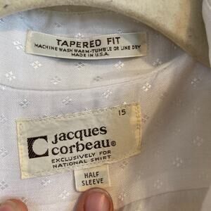 Vintage 70s Jacques Corbeau White Pearlized Tapered Fit Button Down Shirt Sz 15