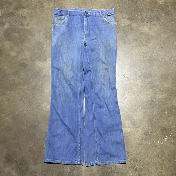 Vintage 70s Jean Team Blue Bell Bottom Flared Jeans 34x31