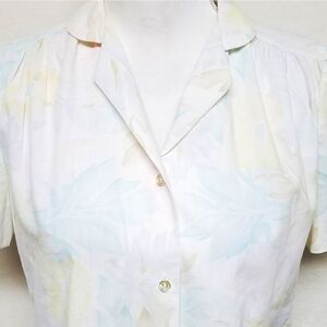 Vintage 1970s pastel floral button up tulip sleeve blouse by Jessica Scott.