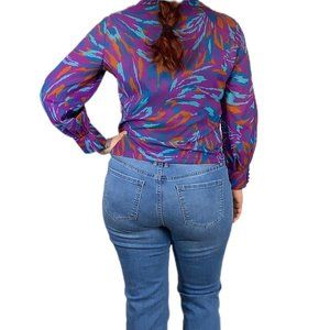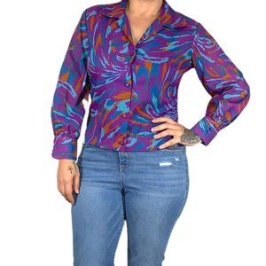 Vintage 70s Jewel Tone Button Up Long Sleeve Print Top Large