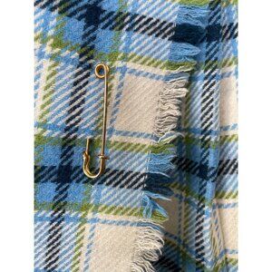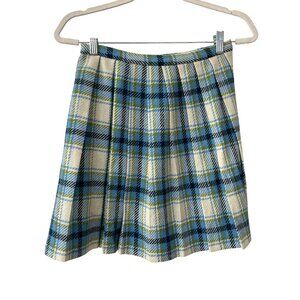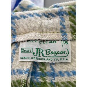 This vintage Jr. Bazaar Sears wrap skirt features a blue and green plaid pattern and fringe detail.