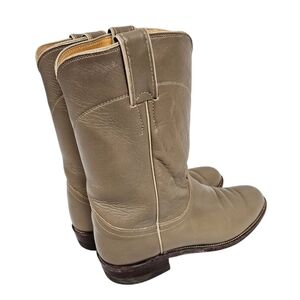 Vintage 70s Justin Boots Taupe Leather Mid Calf Western Cowgirl Boots Size 7B