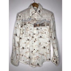 Vintage 70s Kennington Disney Mickey Ski Mountain Theme Men's Medium Shirt