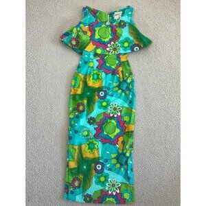 Vintage 70s Keone Sportwear Hawaiian Maxi Dress XS Psychedelic Flower Power