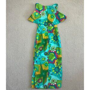 Vintage 70s Keone Hawaiian Maxi Dress Psychedelic Flower Power
