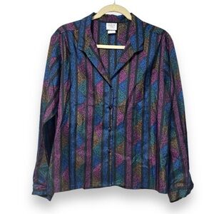 Vintage 70s Koret Retro Patterned Button Up Blouse Women’s Size 14 Made in USA